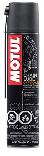 Loading... Please wait...Motul C3 Off-Road Chain Lube Creamy and non-sticky lubricant for all chains of off road bikes and quads. Disperses deposits of sand, mud and dirt. Protects the chain in muddy and wet conditions. 9.3 oz sold each or 12 per case